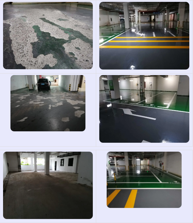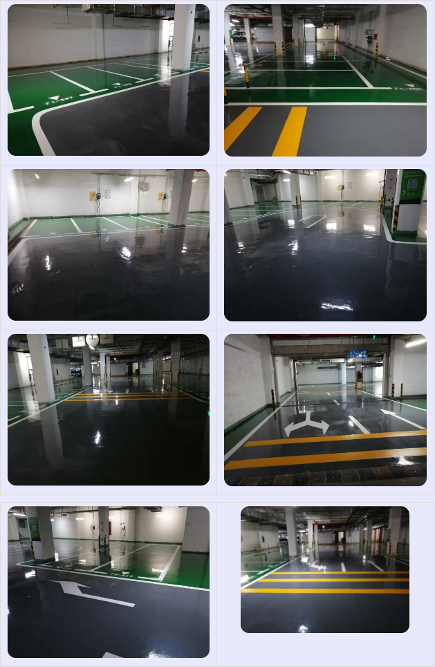 地下車庫環(huán)氧砂漿防滑耐磨地坪施工完后效果圖